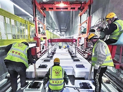地铁6号线一期车站及区间结构全部位于地下,平均深度30米,最深处已达40米,地面与地下温差超过12摄氏度,且区间作业环境狭小,潮湿、噪声对于人员和机械都是极大的考验。建设者们每天为了保证不同道床和工序的顺利衔接,加快施工进度,保证施工质量,每个作业班组都在不停地加班加点施工。业主代表、现场施工负责人、安全员等管理人员24小时在岗监督一线作业,一线作业人员24小时轮班在隧道内从事铺轨施工。