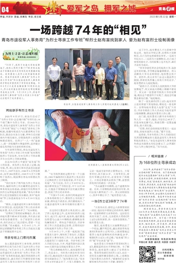 ~~~青岛市退役军人事务局“为烈士寻亲工作专班”帮烈士赵有富找到家人 要为赵有富烈士绘制画像