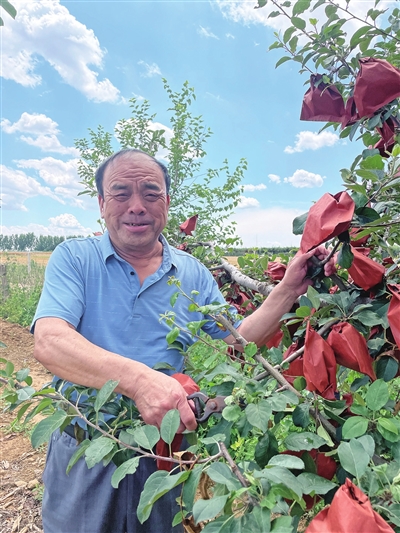 “为了更好地施肥,我挨个统计每棵苹果树的结果数量,然后标记上产果量,据此来施肥浇水。经过这么施肥后,结出的苹果个头都不小。”孙德兴说。