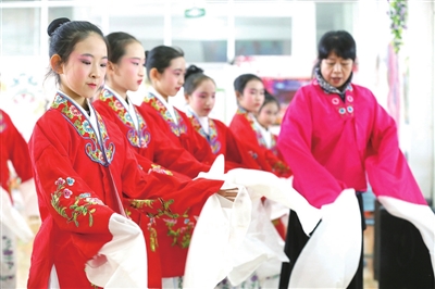 近年来,即墨区积极推动传统戏曲进校园,通过开设兴趣班、“第二课堂”等形式,邀请专业老师教授学生戏曲知识,让学生感受非遗的魅力。六年级学生张润倩深有感触地说:“中国的传统戏曲太精彩了,演员造型精致、服饰华美。我爱上中国戏曲啦!”