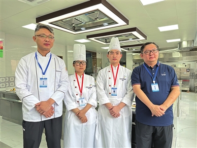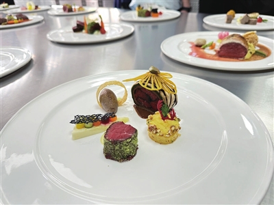 “两位学生在比赛前身体都有不适,凭借顽强的毅力和一股子冲劲出色完成了比赛,作为指导老师,我们十分欣慰。从选拔到备赛、比赛,团队的力量不可忽视,从学校到教育局,我们的背后有坚强的后盾,所以能‘一往无前’。”指导老师曲葭说道。在比赛过程中,两位选手仔细处理食材,小火慢慢烹饪,精心搭配摆盘,利落地收拾操作台,将潜心学习的技能完美地融合到作品中。“为了这次大赛,我们准备了近三个月,本次最终呈现的作品之所以能获得青睐,是因为我们运用了多种烹调方式,又合理使用酱汁、制作难度较高的装饰品,最终呈现出风格融合、独具特色的菜品。其实在备赛过程中,我们也多次遇到瓶颈期,有时候会很迷茫,不知道从哪里能提升,在老师的指导下,我们两个人互相鼓劲,多看、多学国际大赛中的优秀作品,逐渐摸索到属于我们的风格。”李宇然向记者介绍。