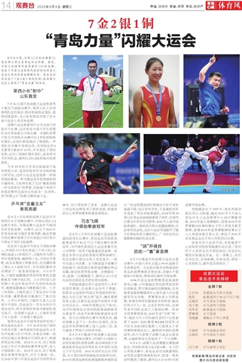 青岛早报 观赛台 A14 2023-08-091 2023年08月09日 星期三