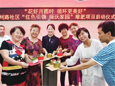 2018年,郑州路社区引入青岛你我创益服务中心,联合青岛市规划师协会、中航前哨科技园等单位策划开展“红色引领、绿沃家园”项目,创新“家庭厨余资源化-社区花园共建-社区环境教育-参与式治理”模式,组织居民围绕垃圾分类、生态堆肥、违章拆除等开展花园规划建设,实行网格挂牌认领管理,打造了阳光育苗站、落叶堆肥池和5个社区花园,其间涌现出多支志愿队伍,带动居民500余人参与到社区治理中来。通过该项目,不仅成功解决老旧楼院环境治理难题,也实现了居民从“为我服务”到“自我服务”的转变,形成了居民自治的良性循环。