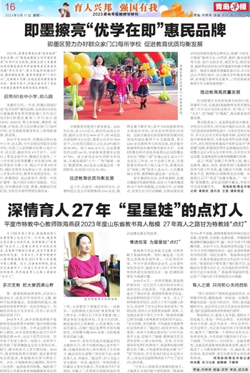 ~~~平度市特教中心教师陈海燕获2023年度山东省教书育人楷模 27年育人之路甘为特教娃“点灯”