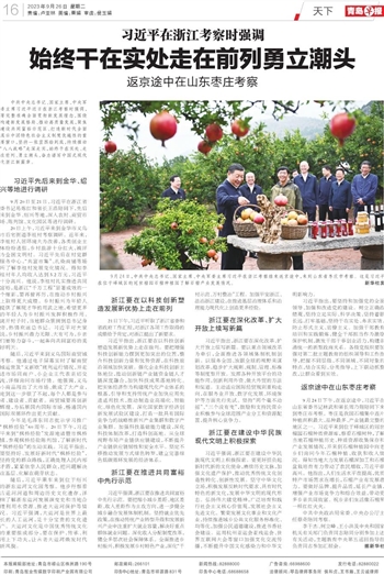 9月20日至21日,习近平在浙江省委书记易炼红和省长王浩陪同下,先后来到金华、绍兴等地,深入农村、商贸市场、陈列馆、文化园区等进行调研。