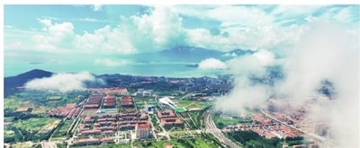 今日海景好,水绿鹤山明。金秋时节,坐落在鳌山湾畔的蓝谷新城,涂抹出一幅金黄色的艺术画卷,充满了春华秋实的气息。一条蜿蜒曲折的海岸线,以美丽的身姿绕城而过,将一处处工业园区、一座座科研院所、一个个美丽渔村串成黄海冠头上的蓝海明珠项链,散发出巨大的磁场吸附魅力。站在鹤山之巅放眼东望,岛滩湾相拥,山海城相连,一座宜居宜业宜游的高品质蓝谷新城跃入眼帘……