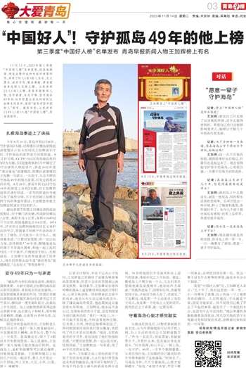 11月12日,2023年第三季度“中国好人榜”名单发布,经各地推荐、网友点赞评议和专家评审等环节,共有150人(组)助人为乐、见义勇为、诚实守信、敬业奉献、孝老爱亲身边好人光荣上榜。山东共有10人(组)上榜,青岛早报新闻人物,信守承诺、矢志不移、坚守海岛49年的76岁即墨山东头村村民王加辉名列其中,荣获“诚实守信中国好人”称号。截至目前,山东共有1149人(组)入选“中国好人榜”,居全国前列。