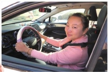 昨天下午两点,记者来到了及时用车青岛分公司,市北区河西街道办事处工作人员、及时用车青岛分公司负责人以及众多媒体记者都已聚集在这里,等待着杨佩佩跑完订单前来“赴约”。没过多久,一辆贴着粉红色草莓熊车衣的白色轿车缓缓驶来,停车、熄火、拉好手刹……一套动作一气呵成。车门打开后,身穿粉色短外套的杨佩佩面带微笑出现在众人的视线里。两次见面,杨佩佩总是将头发利索地扎起,虽不施粉黛,一双总是笑眯眯的月牙眼足以像小太阳一般照亮身边所有人。