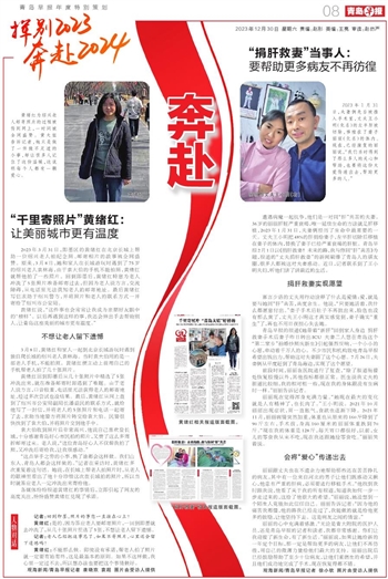 丽丽的心中充满着感激。“无论是青大附院的医护人员,还是青岛早报的记者和读者,我都非常感谢。你们让我迎接了新生命,有了新生活。”丽丽说,如果让她给新的一年定个目标,那一定是帮助更多的病友,让他们不再彷徨,用自己的微薄力量给他们最大的支持。丽丽出院后已经鼓励帮助了至少十位病友,让他们重燃生的希望,并且他们成功地完成了手术,现在恢复得都不错。