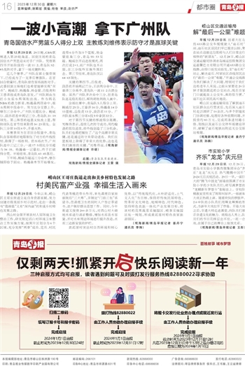 早报12月29日讯 29日晚,CBA联赛进入第23轮角逐。回到主场的青岛国信水产男篮迎来对手广州队。凭借第四节开始阶段的一波11∶2,青岛队92∶85战胜对手,拿下一场关键胜利。
