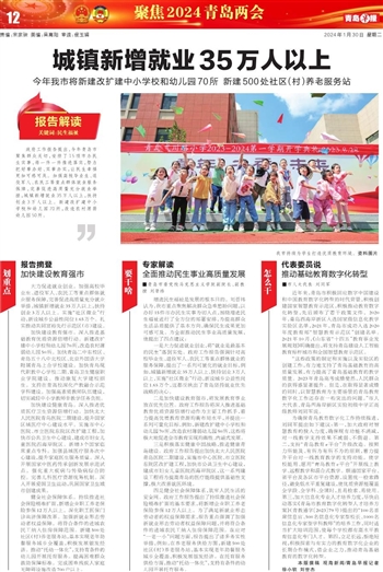青岛早报 聚焦2024青岛两会 A12 2024-01-301 2024年01月30日 星期二
