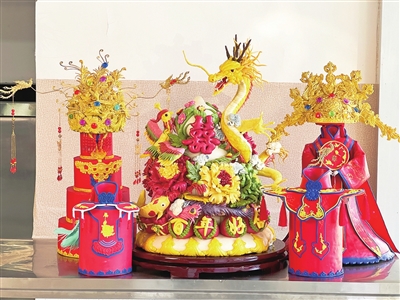 “王师傅好!”“主持人好!各位观众朋友们,大家过年好!”一边观看着自己之前参加央视节目的视频,王君一边向记者介绍,“这些花馍都是我之前做的,每一个花馍背后都有一个精彩的故事,有为百岁老人祝寿用的,有慰问80多岁退役老兵的,有新人结婚拜天地用的,有新生宝宝满月用的……”