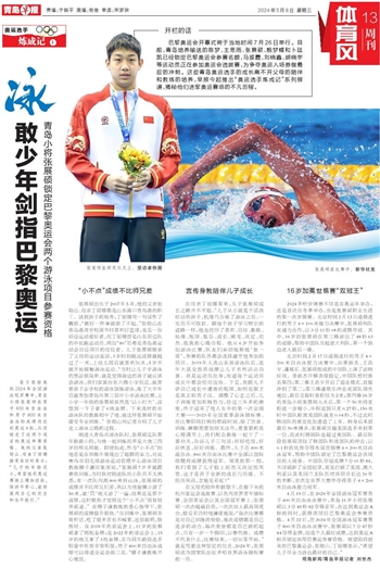 在日前结束的2024年全国游泳冠军赛中,青岛小将张展硕在男子400米自由泳和男子800米自由泳的成绩均达到奥运A标,从而锁定了这两个项目的奥运参赛资格。他的父亲张勋山、母亲丁丽娜接受采访时表示:“儿子的年龄还小,希望他到奥运赛场上增加经验,保持平常心,能够展现自己的实力和水平就行。”