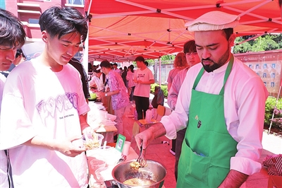 早报5月14日讯 5月13日,青岛滨海学院“美美与共 天下大同”首届国际周活动拉开帷幕。开幕式现场,俄罗斯留学生跳的中国舞、中国老师跳的韩国舞各有韵味,获得了阵阵掌声;学生们制作的饺子、紫菜包饭、越南春卷等特色美食引来师生排队品尝;插花、剪纸、汉服体验等项目体验区的欢笑声语将活动现场气氛推向高潮。