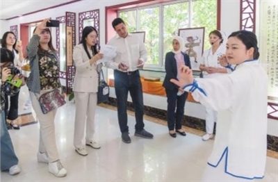 此次埃及亚历山大省媒体团来访,在青岛市海慈中医医疗集团治未病科观摩和体验了中医正骨、脉诊、拔罐、艾灸、耳穴压丸等特色诊疗技术。