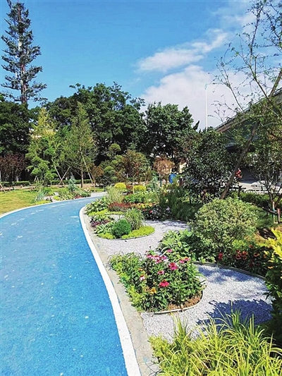 记者在现场看到,这片区域建设成了一个休闲广场,打造了健身步道、生态草坪、花镜景点、异形水磨石座椅、儿童乐园、园路灯光照明和多层次植被等景观。