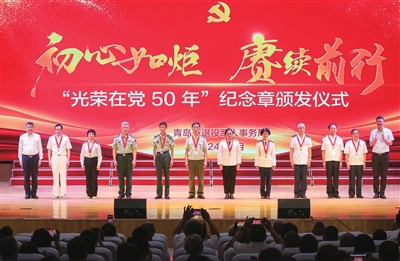 早报7月1日讯 7月1日,青岛市退役军人事务局组织召开“初心如炬 赓续前行”庆“七一”主题党日暨“打头阵 当先锋 抓落实”宣讲活动,为“光荣在党50年”的军休干部党员代表颁发纪念章,为获评“两优一先”的党员颁发证书,并通过宣讲等形式,讲述荣军故事,激励干部担当作为,传承党的光荣传统和优良作风。