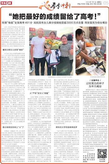 对于未来的人生规划,庄佳昊表示,由于分数的原因,报志愿要格外慎重。如果达不到本科线,那就选择一个好的专科。只要心态好,将来还可以上本科、读研……这个暑假,庄佳昊打算去打工,赚钱去旅行。“愿女儿不负韶华,不负青春,奔赴下一个山海。”对于女儿的未来,孙艳充满信心。