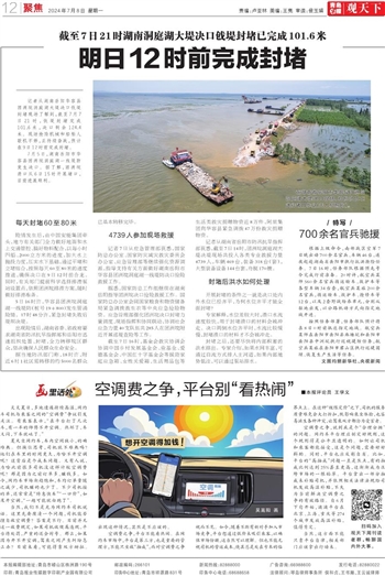截至7日21时湖南洞庭湖大堤决口戗堤封堵已完成101.6米~~~