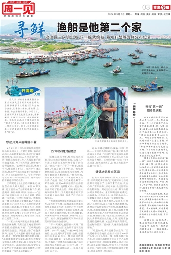 近几天,田横岛旅游度假区山东头村渔民王欣明天天都在码头上检修维护自己那艘200马力的小渔船,忙着备水备油、整渔网、上物资,为出海做好准备。9月1日,王欣明早晨6点就登上渔船,摩拳擦掌,只待12点一到,准时拔锚起航。他告诉记者,对于像他这样的“船老大”来说,开海当天是像过年一样的大日子。昨日,王欣明在渔船上对记者讲述了他27年的海上寻“鲜”记。