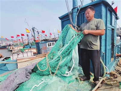 王欣明是土生土长的田横渔民,就住在山东头码头附近。早在10多天前,老王就开始了出海的准备工作,检查绳索、修补渔网、刷漆、加油……“出海打鱼不能马虎,但凡有点差错,可能就一无所获。”王欣明笑着说。他的船是一艘10米长的小型捕鱼船,“当初买这条船花了30多万元。”王欣明给记者介绍自己的渔船,别看船身不大,但载重能达到4000斤。这艘船已经伴随他风里来浪里去度过了10多个年头,对他而言,渔船既是自己的老伙计,又是自己的第二个家。