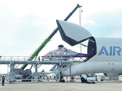 “大白鲸”的设计飞行次数是3万次。空客提供的数据显示,与现有其他运输机相比,“大白鲸”的内部横截面最大,可容纳宽7.1米、高6.7米、长39米的超大型货物,载重40吨。2021年底,一架“大白鲸”完成首次承运服务,把客户购买的空客直升机从法国运送到日本神户交付,途中先后在波兰、俄罗斯和韩国加油。