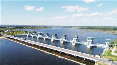 初秋的大沽河静水流深,大面积芦苇荡随风起伏,沿岸色彩斑斓的植物与蓝天碧水构成一幅壮观雅致的生态画卷。在大沽河即墨段,一座护镜式拦河闸矗立在河中,巍峨挺拔的轮廓与夕阳的余晖交织成即墨区移风店镇一幅动人的画面。