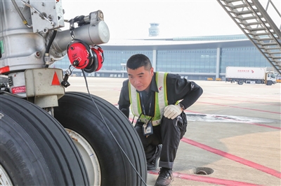 “整个过程就像‘从头摸到脚’,确保飞机的各个部分都适航,常规的检查一般需要20分钟至60分钟。”冯宝帅说。