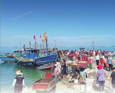 “开海前两天,由于海上风比较大,我们没能出海,第三天大量渔船驶入捕捞海域撒网作业,这一趟确实收获不小。”渔民王希国说,本地小渔船一般只有两名渔民操作,在近海捕捞几个小时就赶回码头,将收获的鱼、虾等在码头上出售。