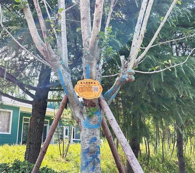 浮山森林公园的智慧化建设水平也在不断提升,为了让游客在游玩的同时增长植物方面的科普知识,此前,崂山区浮山管理分中心组织养护单位对园区内植物进行了考察调研,专门制作了新型植物标识牌,为园区内各类植物佩戴上专属“身份证”。植物标识牌涵盖80余种灌木和乔木,主要分布在高山湖、莲花园周边以及童趣园、醉樱谷等重要节点区域,为游客提供植物科普介绍服务,通过微信扫一扫功能,就可以检索出该树木科属种类、形态特征、生长习性等详细内容,让游客一目了然,成为普及植物知识的“天然植物园”。每个“身份证”上都刻有与之相关的诗句,为自然科普赋予了诗意色彩。