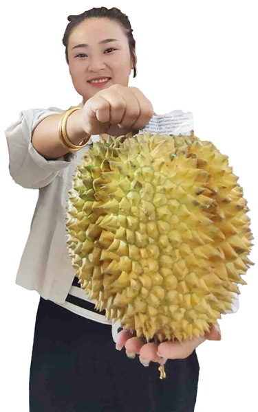 9月6日上午,一位来自潍坊的商贩在青岛东方鼎信国际农副产品交易中心采购了1000多斤“树上熟”榴莲,他对这批榴莲的销售前景非常看好,“我是今年4月开始从事榴莲生意的,每次从即墨采购2000斤榴莲,回到潍坊用不了几天就销售一空。我平均一周来一次即墨进货,今年5月最多一次采购了5000多斤榴莲。”