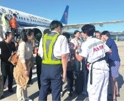 当日下午3时10分,青岛机场运行指挥中心接通知后立刻启动应急预案,将航班协调至便于救援的远机位并通知相关保障单位。30分钟后该航班安全落地并滑行至指定机位,医护人员及担架、医疗设备、升降平台车等全部就位。舱门一开启,青岛机场工作人员迅速将老人平稳接下飞机。医护人员上前耐心安抚老人情绪,立即在现场展开紧急救治工作。在为老人测量了心跳、血压等基础数据指标后,医护人员开展了进一步全面细致的检查,同时引导老人注意呼吸频率。在医护人员的专业指导和陪同下,老人情绪明显放松,并前往救护车上休息观察。