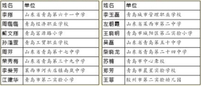 表彰对象名单(青岛)