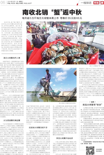 ~~~每天超5万斤南方大闸蟹来青上市 零售价35元到65元
