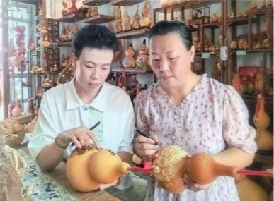 为此,姐妹俩大胆创新,设计出更多功能类的储物器皿、葫芦饰品等,提高其使用价值。同时,在葫芦上雕刻的题材也不再囿于传统,姐妹俩将葫芦做成镂空葫芦灯、雕花葫芦茶叶罐、葫芦乐器等文创产品,设计出了时尚单品“葫芦手链”和搭配不同穿衣风格的葫芦配饰等,让葫芦雕刻作品更具实用性,让曾经束之高阁的艺术品不断“圈粉”。