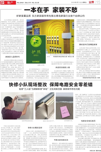9月12日14时,岛城装修行业知名品牌东方家园将在位于市南区福州北路5号的东方家园装饰整装旗舰店,举行“家装护照 保驾护航”2024东方家园·装博士100条行业自律公约发布会,并率先推出青岛家装行业首个自律公约,向业主做出公开承诺。据了解,“家装护照”包含了多达100条的服务内容,涉及装修设计、装修主材、规范施工及售后服务等装修全流程的各方面。