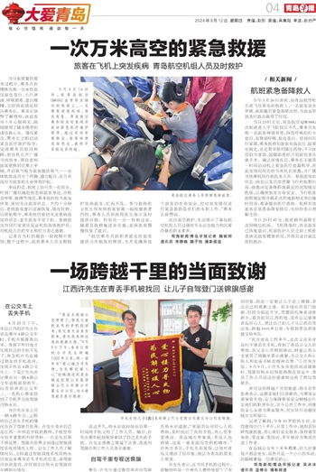 ~~~旅客在飞机上突发疾病 青岛航空机组人员及时救护