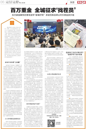 提起装修,是最让市民头疼的一件事。由于家装涉及水、电、木、瓦、油等诸多门类,从材料到施工,消费者很难理清其中所有门道,这就造成了信息的极度不对称。再加上很多商家缺乏诚信经营的理念,造成了装修市场鱼龙混杂。工期延误、货不对板、以次充好等现象在装修市场都是经常遇到的问题。而眼下在消费升级的大背景下,很多装修企业也看到了市场对于品质的需求。昨天岛城装修行业知名品牌东方家园,以一场“家装护照 保驾护航”2024东方家园·装博士100条行业自律公约发布会,率先推出青岛家装行业首个自律公约,以“家装护照”的形式,将多达100条的服务内容,作为自己承诺的内容。同时推出现金奖励,全城寻找“装修找茬员”。