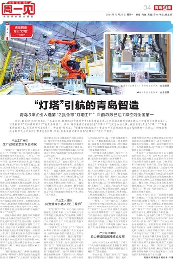 青岛市工业和信息化局工业互联网处相关负责人介绍,近年来,青岛市工业和信息化局坚持把工业互联网作为串联产业转型升级的主脉络,实施“工赋青岛”和“四新领航”专项行动,印发《青岛市加快制造业数字化转型打造“工赋青岛·智造强市”实施方案(2023—2025年)》,率先探索打造以平台赋能百业改造、以数据驱动千企升级、以场景支撑应用落地的数字化转型“青岛样板”,占领智能制造发展制高点。截至目前,青岛已在重点行业培育建成智能工厂68家,累计入选6家全球“灯塔工厂”和1家“可持续灯塔工厂”,数量居同类城市前列。