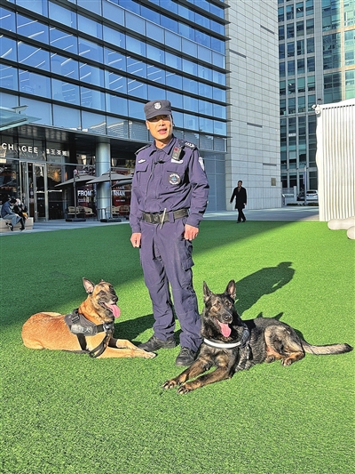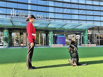 在一些公共场所,如果眼前出现一只大狗,大多数人心里都会有一丝恐惧感,但是在青岛国信·海天中心,来来往往的人们却对这里的几只大狗感到非常亲切,因为它们是担负着重要任务的工作犬。它们温驯和专业的表现,吸引了众人的目光。特别是一只名叫黄蜂的工作犬在海里捡拾垃圾的视频被网友发到网上后,大家对这些工作犬的种类、工作内容、性格脾气等更加感兴趣。11月5日下午,在海天中心,记者见到了5只工作犬中的两只——黄蜂和卡尔。通过驯导员的讲解,记者了解了它们鲜为人知的幕后故事。