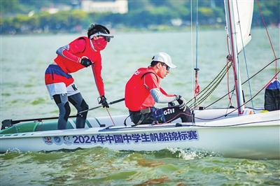 近日,在2024年中国中学生帆船锦标赛中,来自青岛九中2023级22班的金炜皓和崂山区育才学校2022级5班的栾奕康组合,与来自全国36个地区的近百名青少年运动员展开激烈角逐,勇夺C420级组别全国亚军,实现了青岛青少年帆船运动成绩在这个级别上零的突破。