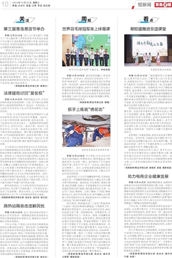 青岛早报 短新闻 A10 2024-12-251 2024年12月25日 星期三