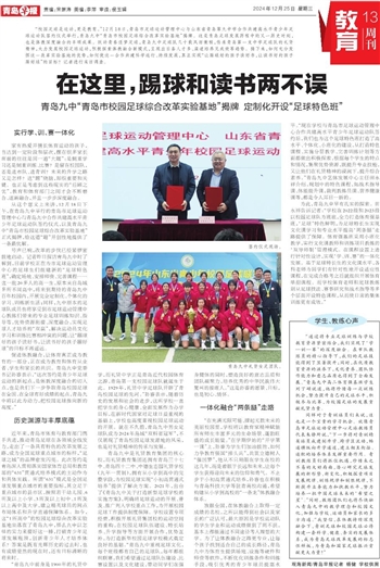 ~~~青岛九中“青岛市校园足球综合改革实验基地”揭牌 定制化开设“足球特色班”