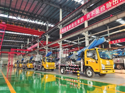 在专用车领域,高空作业车和云梯车曾长期依赖进口。2020年前,国内28米以上高空作业车全部需要海外采购。九合重工于2019年立项研发,仅用三年时间便实现从技术引进到自主创新的跨越:2022年3月,国内首台38米高空作业车下线;4月,45米车型问世,突破狭小空间360°无限回转技术瓶颈;目前,70米车型已进入研发阶段,预计明年95米车型将刷新全球纪录。“我们的高空作业车不仅替代进口,更以智能化电控系统提升作业效率。”杨世法表示。