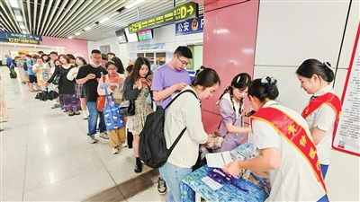 去年12月31日晚上8点,站务员宋佳悦和胡德硕结束白班,外出吃了顿饭,返程时发现车站已挤得水泄不通。“到处都是人,出站的乘客站满了人行道。”两人当即回到站内,再次投入现场保障。次日凌晨两点,跨年活动的热闹劲仍在持续,车站附近的营业商铺早已座无虚席,成百上千的市民游客聚在一起,等待观赏新年海上的第一次日出。由于露天气温较低,石老人浴场站选择不关站,并免费提供座椅、热水和暖贴等御寒物品,让300多名游客在地铁站里度过了温暖一夜。