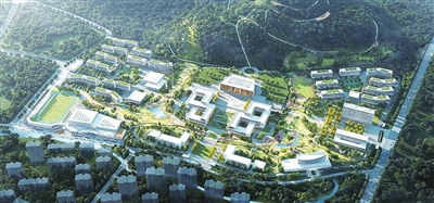 青岛酒店管理职业技术学院蓝谷校区项目是2025年山东省重大项目,也是青岛蓝谷的第一所高等职业院校。项目位于温泉街道前海东村以东,按照“整体规划、分期实施”的原则分期建设。一期项目用地面积470亩,建筑面积13.5万平方米,将建设教学实训综合楼、图书馆、学生生活组团等设施,预计2026年9月全面建成并投入使用。二期规划建设智慧体育场馆、产业学院集群等功能载体。项目整体建成后可容纳2万名全日制在校生,将有效填补蓝谷区域应用型职业教育的空白。