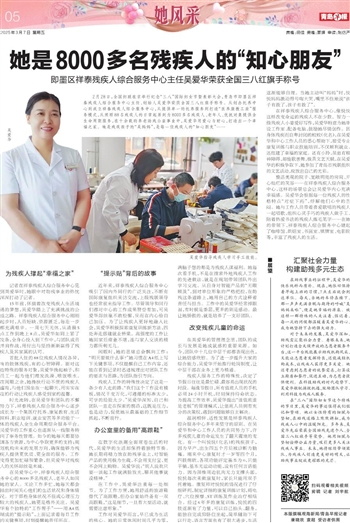 ~~~即墨区祥泰残疾人综合服务中心主任吴爱华荣获全国三八红旗手称号