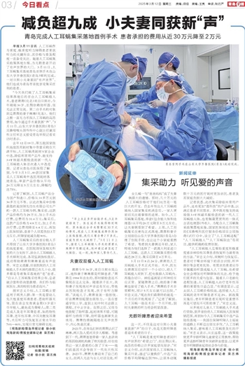~~~青岛完成人工耳蜗集采落地首例手术 患者承担的费用从近30万元降至2万元