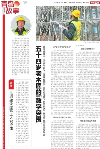 将传统木工作业与数字化深度融合,青岛地铁红岛线网运营控制中心(以下简称“红岛控制中心”)木工班组木工、54岁的时安平(上图)自学三维建模知识,完美解决了工作中的难题。青岛地铁的班组建设,让不同岗位上的人才感受到了重视与尊重,让他们在各自的岗位上勇于进取,实现自我价值。青岛地铁对创新的支持,正吸引着更多的人才加入建设者的队伍。出生于1971年,19岁成为木工学徒,从业35年迎来了个人职业生涯的“数字化转型”,3月21日,时安平告诉记者,是项目的高要求、高精细标准,让他在“数字化转型”的道路上越走越坚实,“不搞数字化就跟不上时代了!”