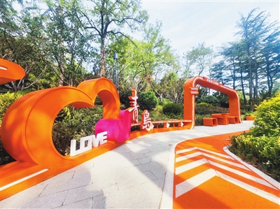 宁夏路口袋公园位于宁夏路东侧,北起高雄路,南至新竹路,周边多为居住区、学校等。口袋公园南北长约200米,东西宽约15米,以“心若向阳 次第花开”为设计理念,充分考虑一墙之隔的青岛大学学生主体,打造青春盎然、活力向阳、生态书香的森林氧吧。整个公园分为活力聚合区、时光漫步区、活力健身区、自然氧吧区、青春剧场区等,在不同节点设置不同功能的景观装置,整体基调以亮丽橙色为主,结合主题LOGO、形象雕塑,辅以地面彩虹步道,搭配花境、组团绿化,营造了一个充满活力的城市形象展示窗口。